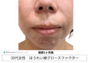 ほうれい線グロースファクター注射後、まだ1ヶ月しか経っていませんが、左右共にほうれい線がうっすら改善されております