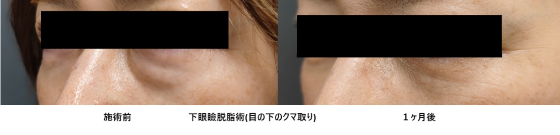 今回は、目の下のクマ取り治療(下眼瞼脱脂)を行った50代女性の症例をご紹介致します。