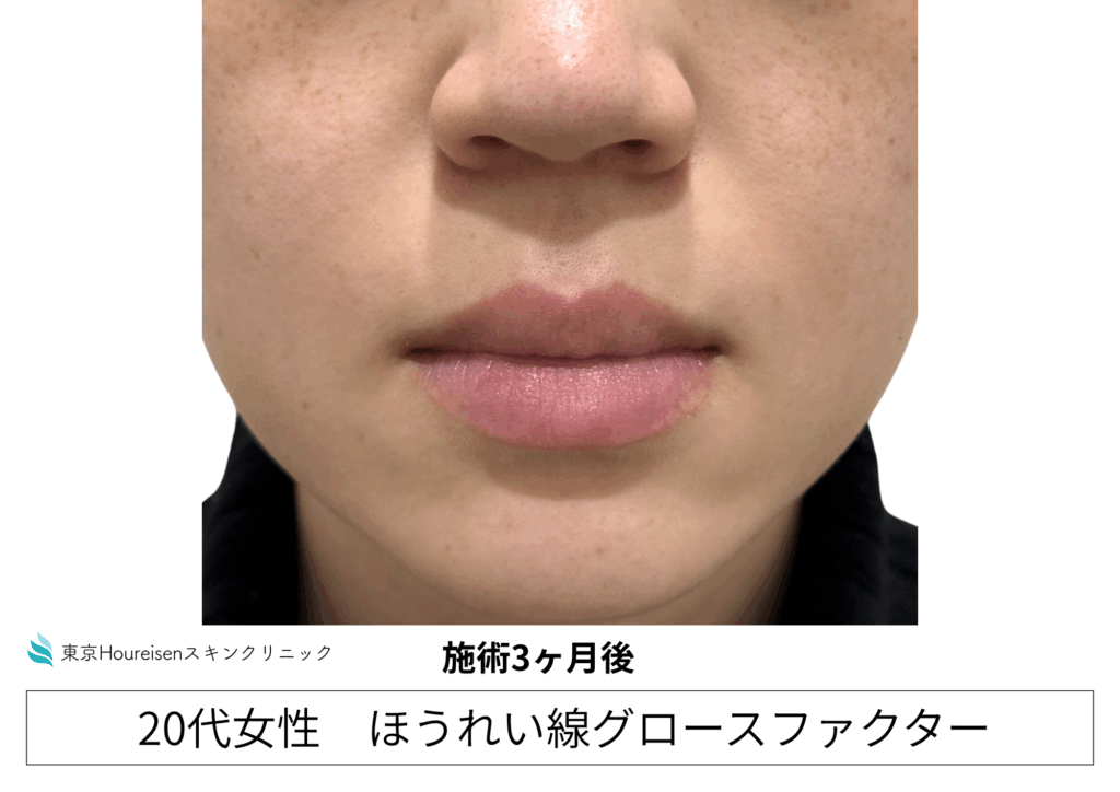 3ヶ月が経過し、ほうれい線の改善が継続していることが確認できます。