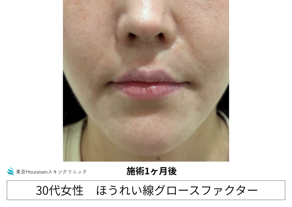 ほうれい線グロースファクター注射後、1ヶ月が経過しました。ほうれい線が改善されているように見えます。