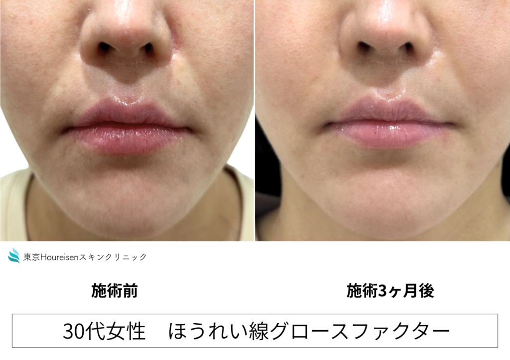 グロースファクター治療では、注入直後一時的にほうれい線が改善したように見えることがあります。