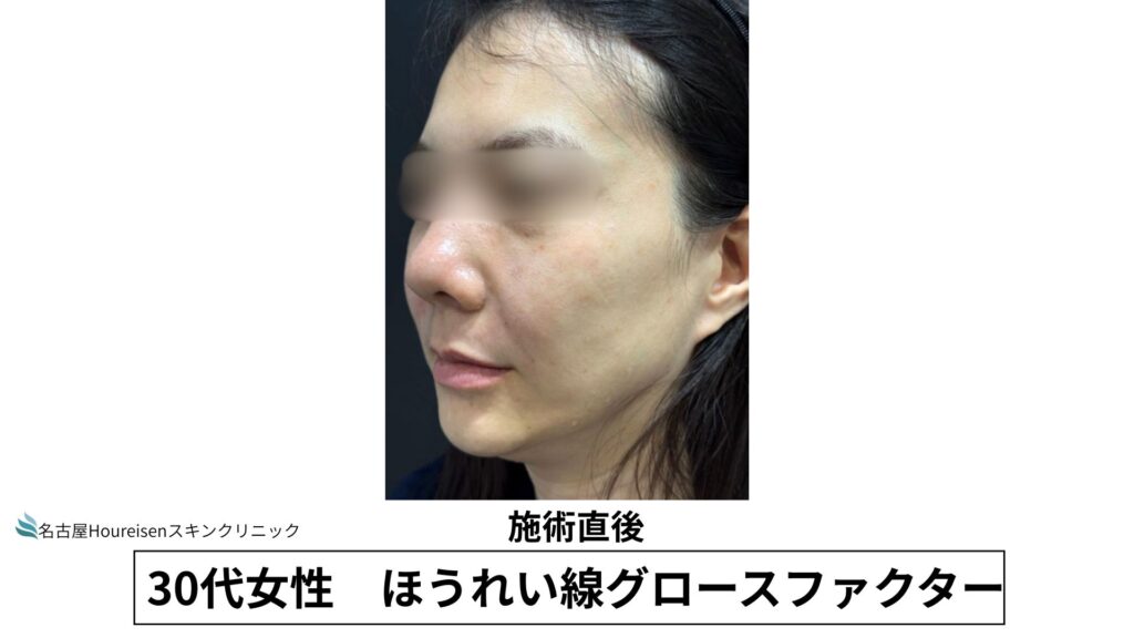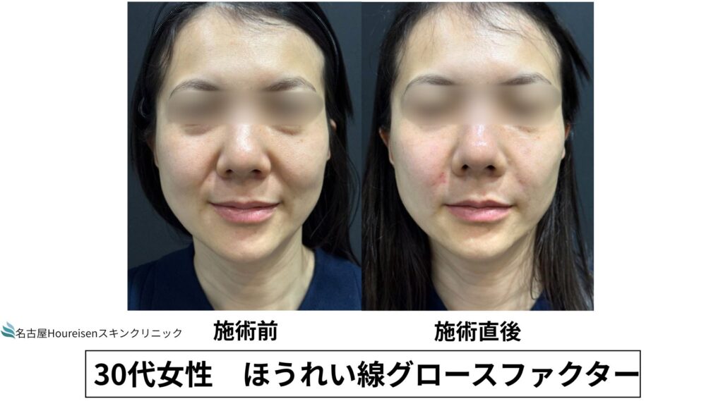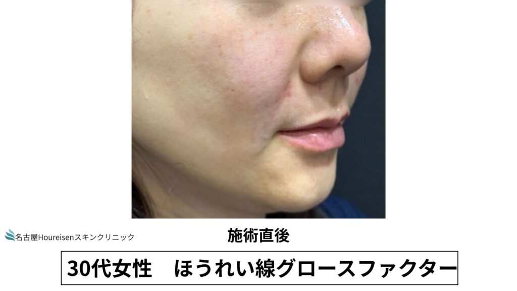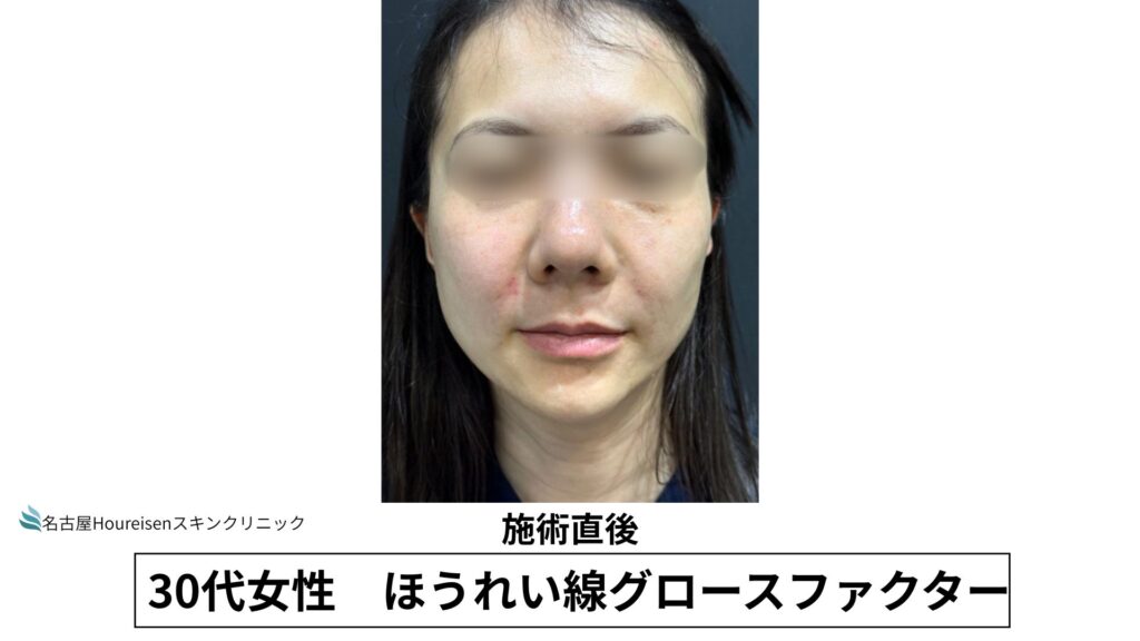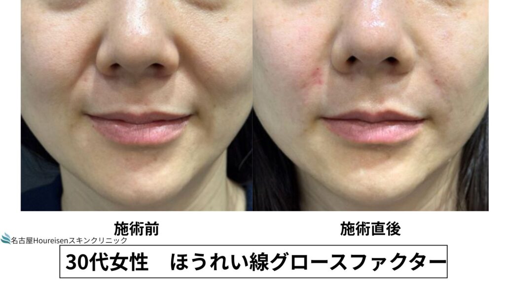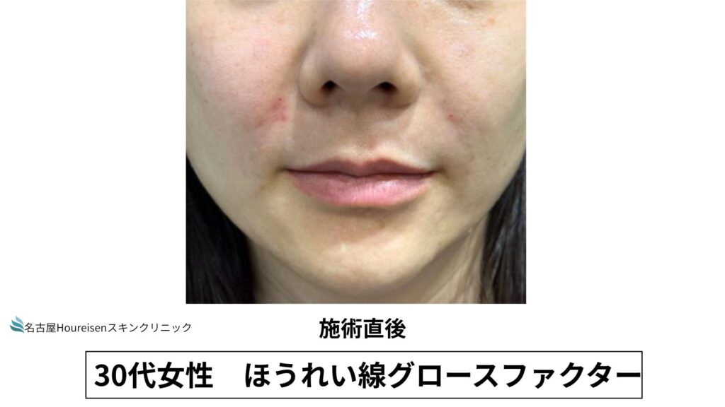 今回は、30代女性のほうれい線グロースファクターの施術直後の写真をご紹介します。