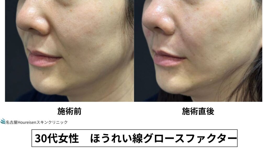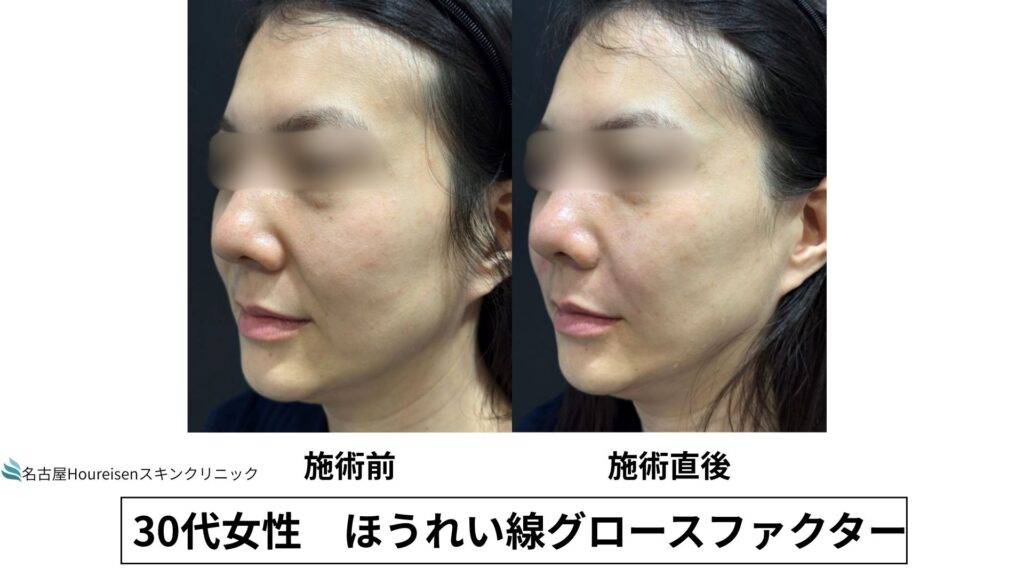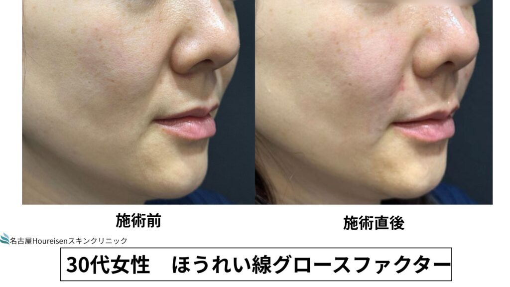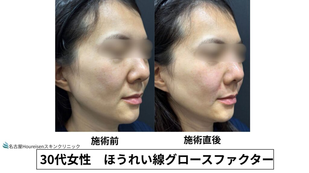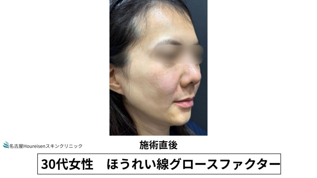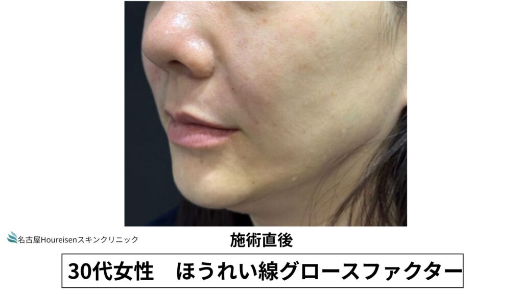 今回は、30代女性のほうれい線グロースファクターの施術直後の写真をご紹介します。