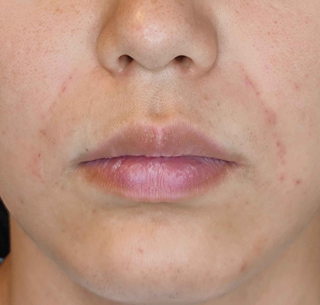 左右差のあるほうれい線(左の方が深い)が目立ちつつあります。