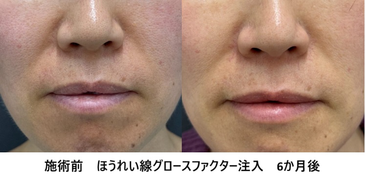 ほうれい線グロースファクター注射半年後、ほうれい線が改善しているのが分かります。