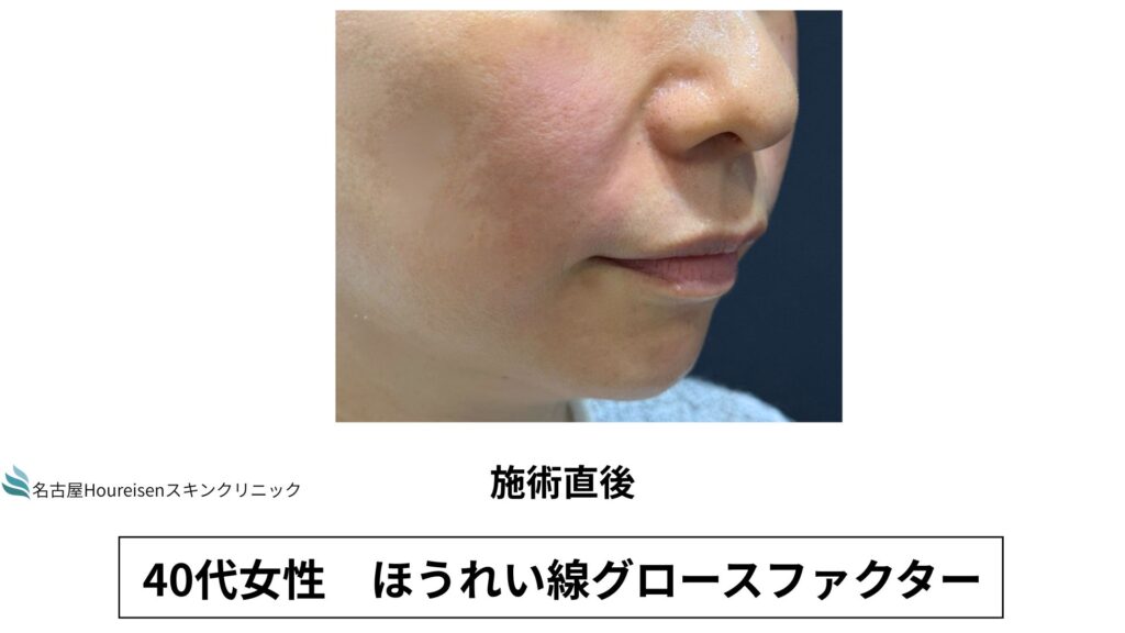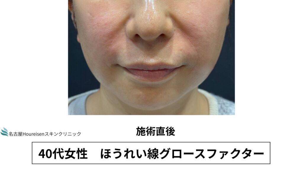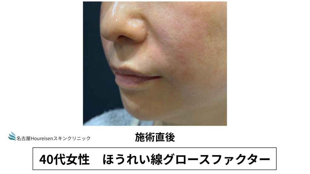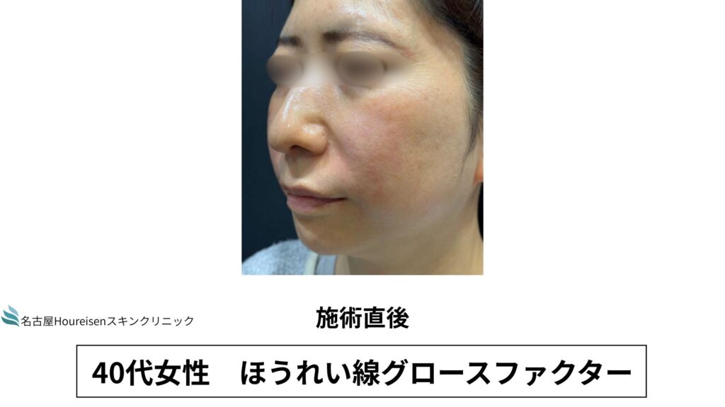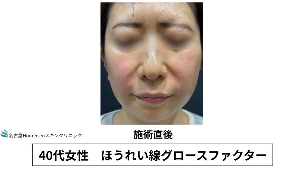 今回は、40代女性のほうれい線グロースファクターの施術直後の写真をご紹介します。
