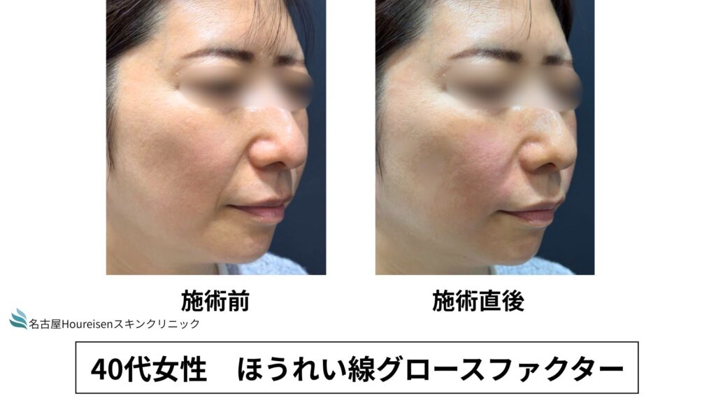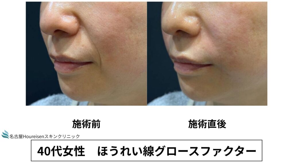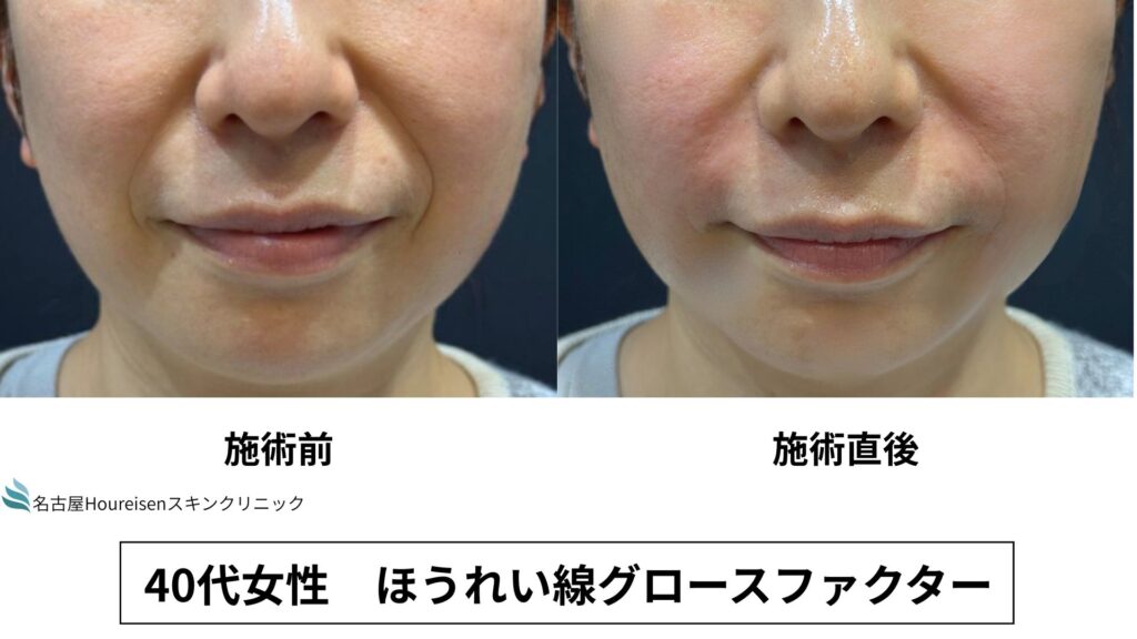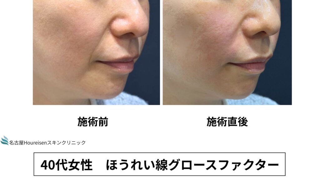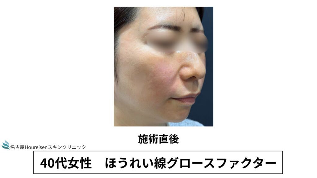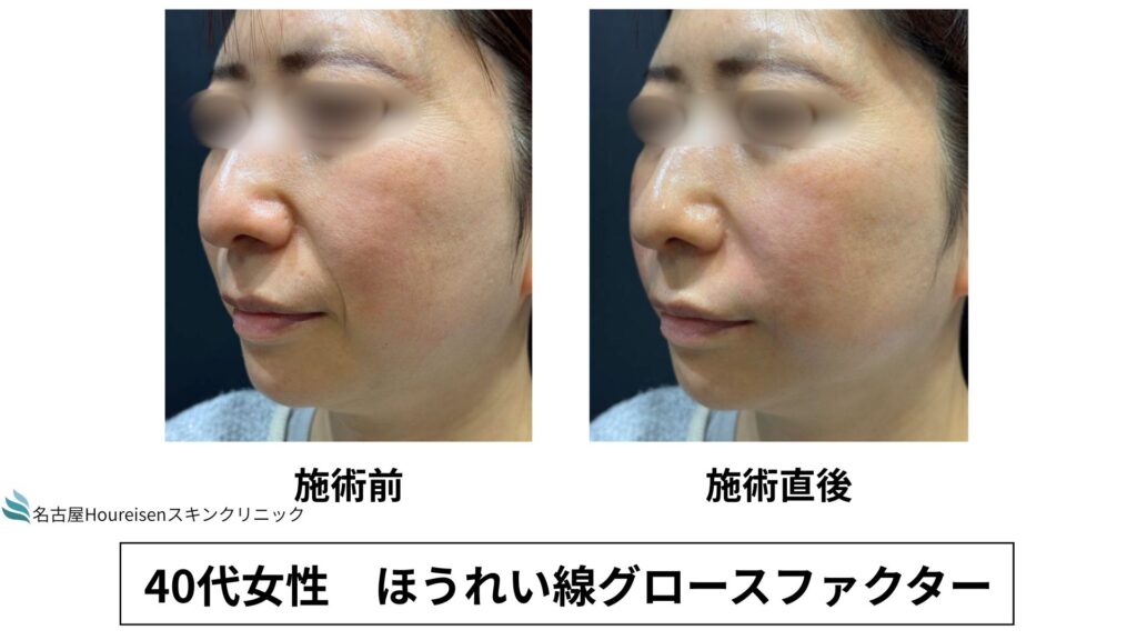 今回は、40代女性のほうれい線グロースファクターの施術直後の写真をご紹介します。