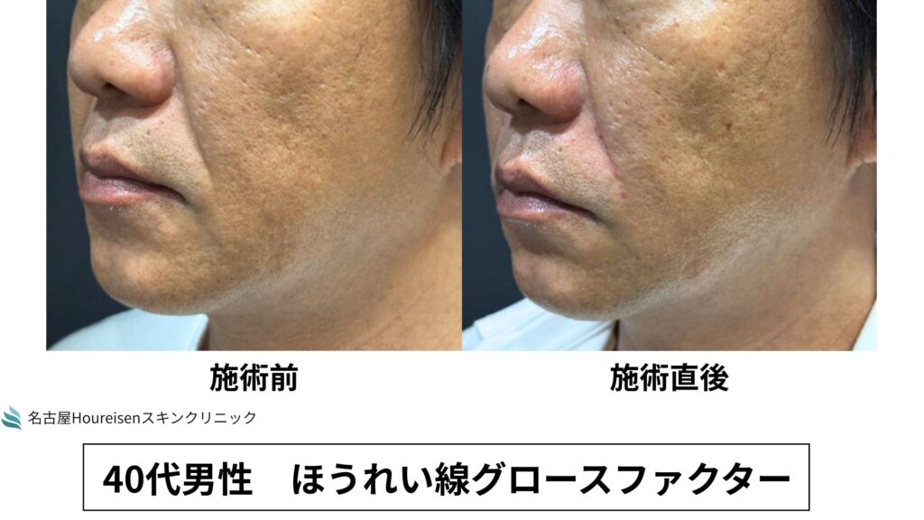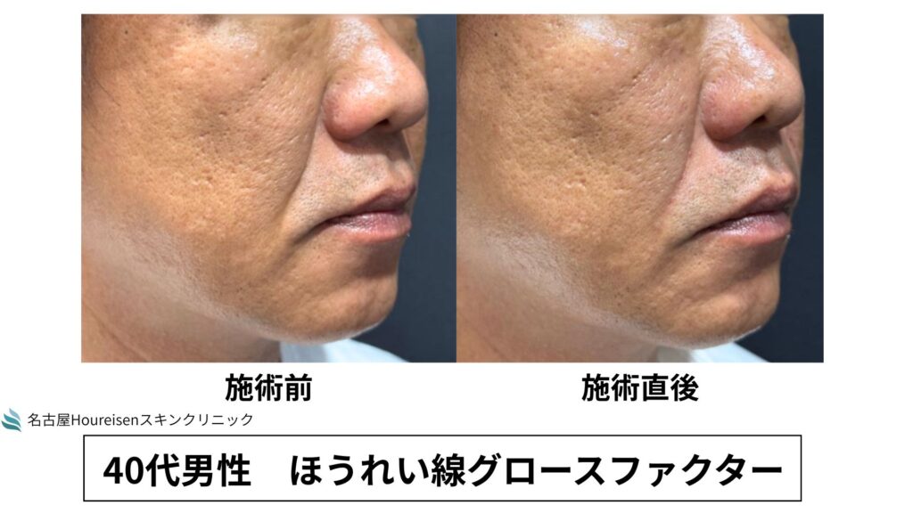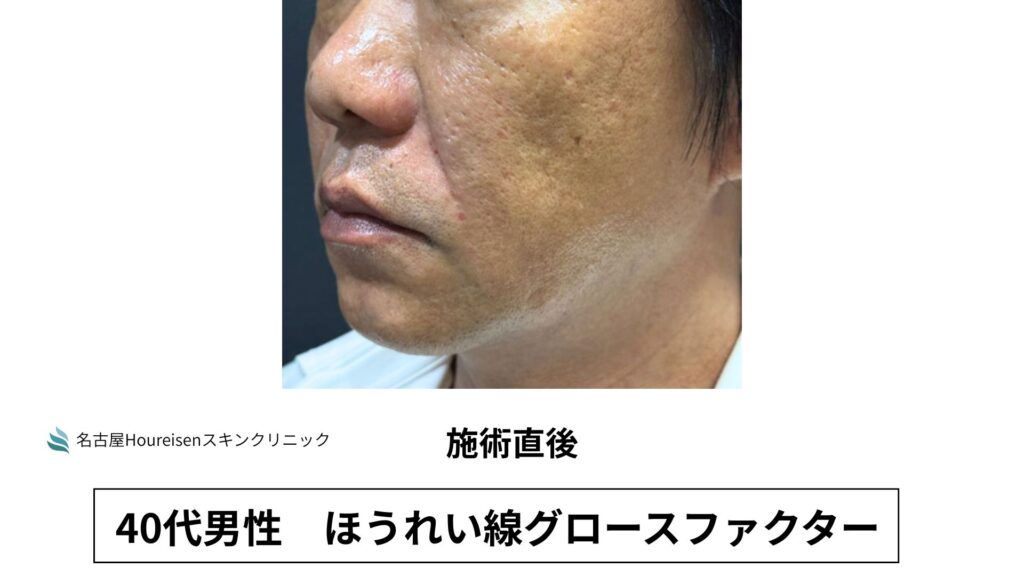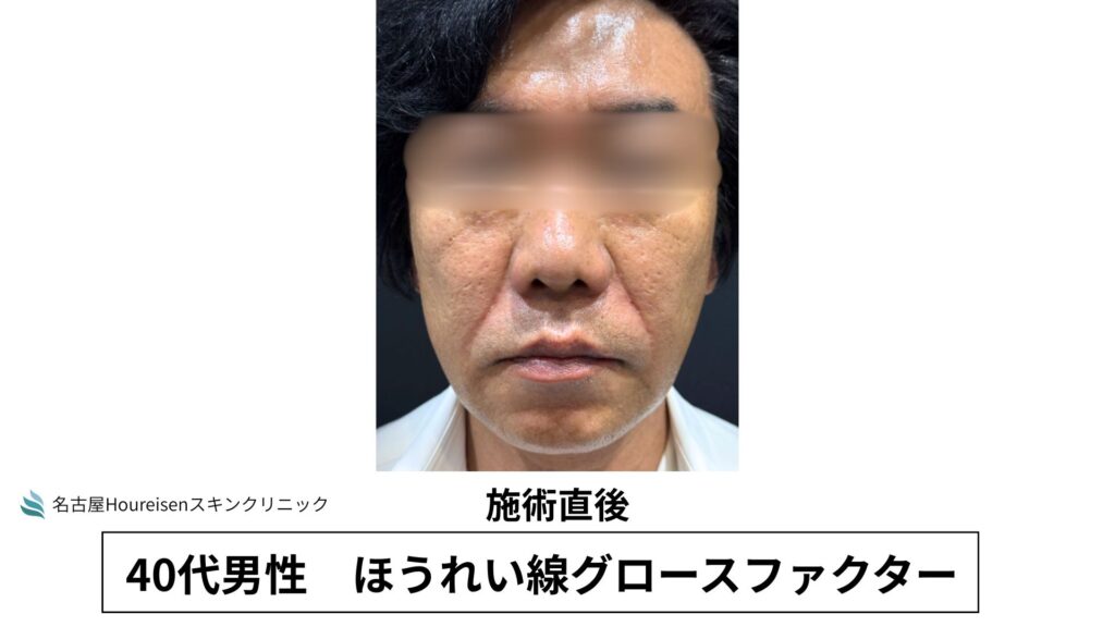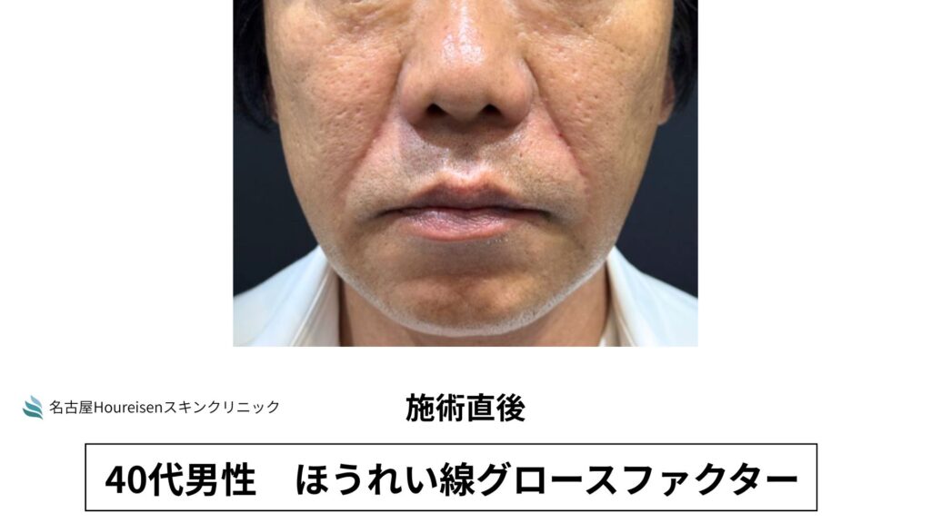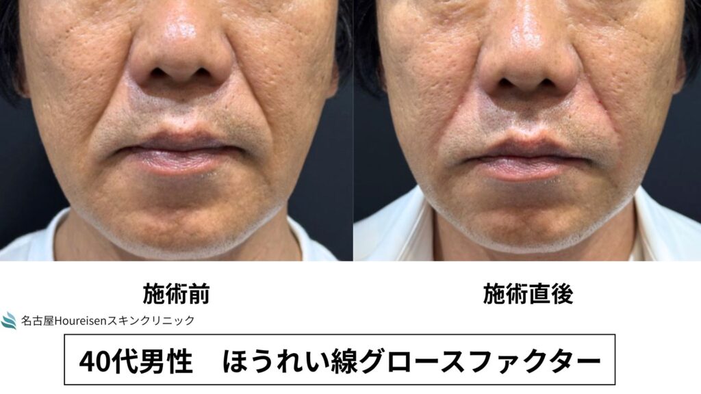 今回は、40代男性のほうれい線グロースファクターの施術直後の写真をご紹介します。