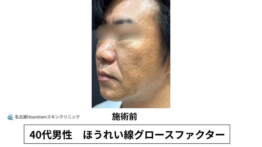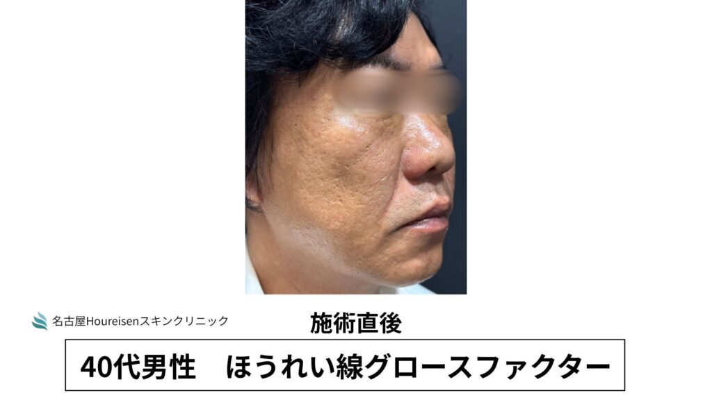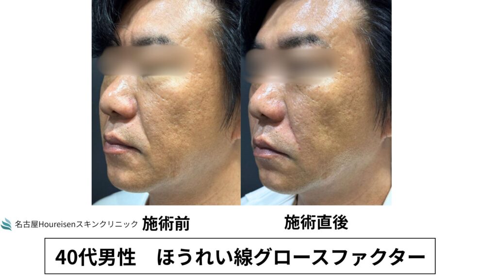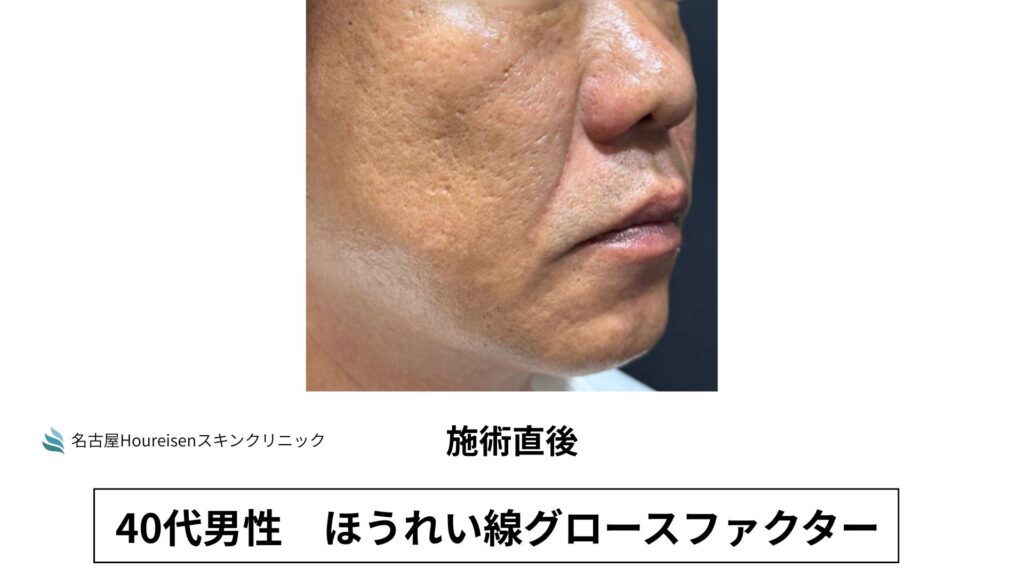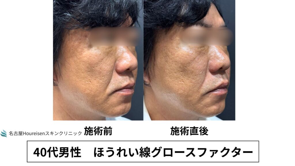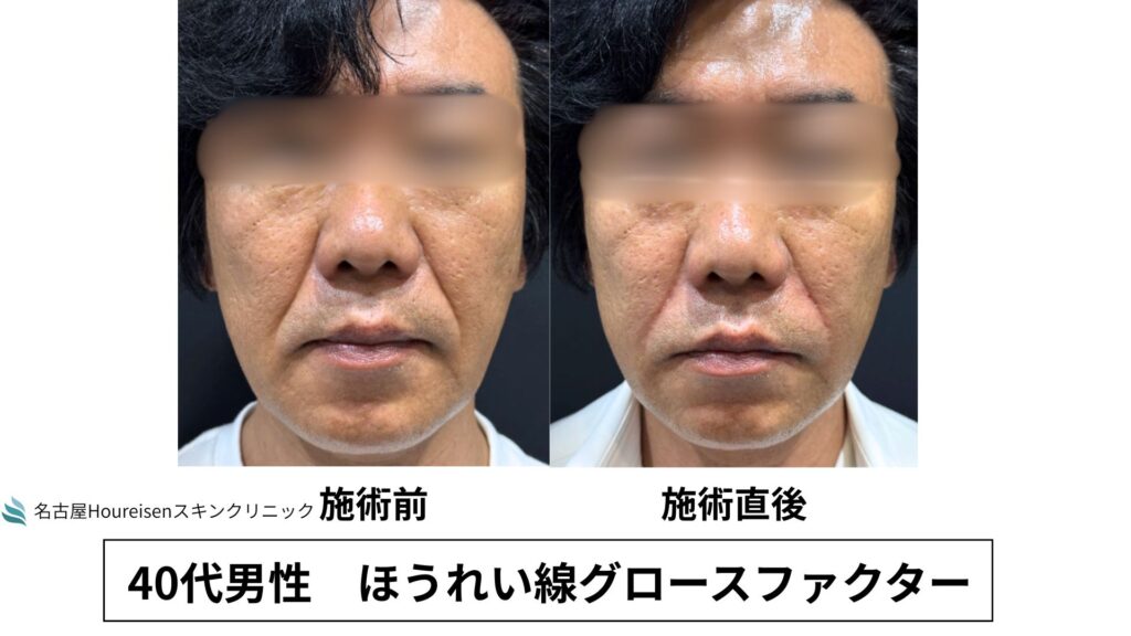 今回は、40代男性のほうれい線グロースファクターの施術直後の写真をご紹介します。