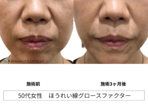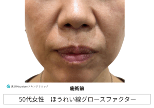 今回は、当院でグロースファクター注射で、ほうれい線治療を行った50代の女性をご紹介致します。