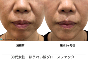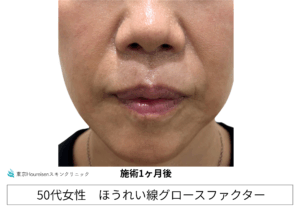 ほうれい線グロースファクター注射後、まだ1か月経っていませんが、深かったほうれい線が改善されております。