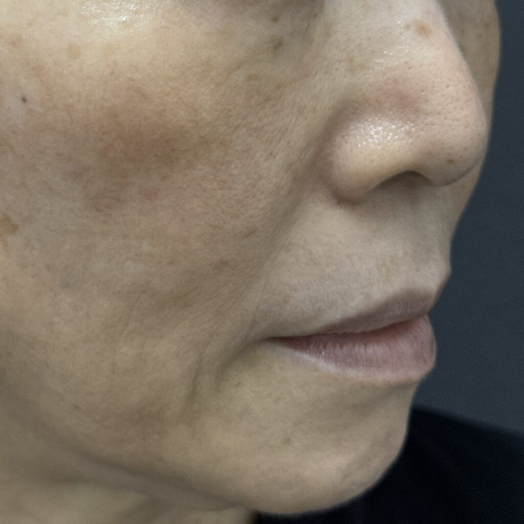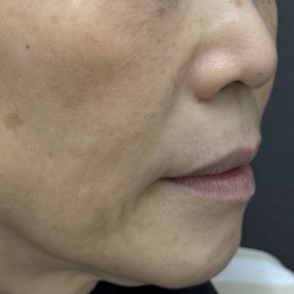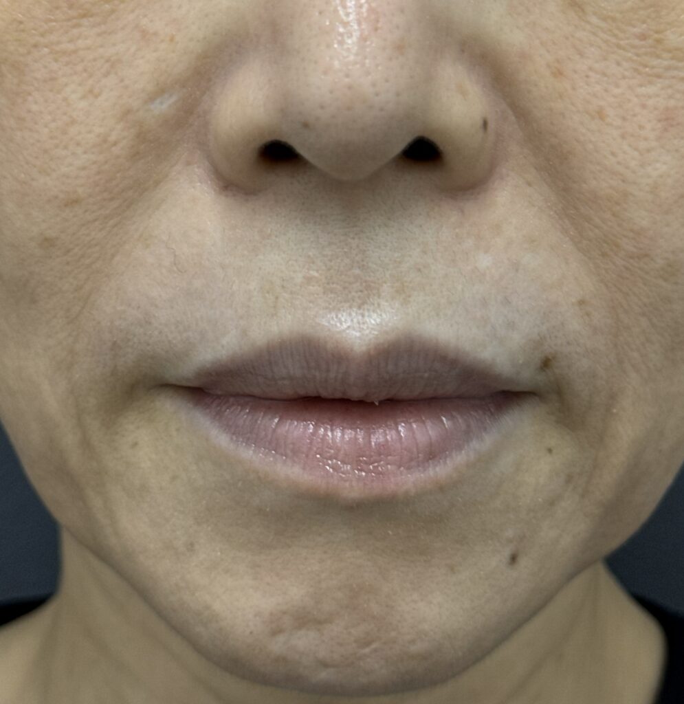 深いほうれい線の場合、1回では効果が乏しい、物足りない方も中にはいらっしゃいますが、本症例では1回でもかなりの効果が出ていますね。