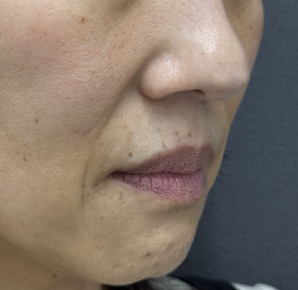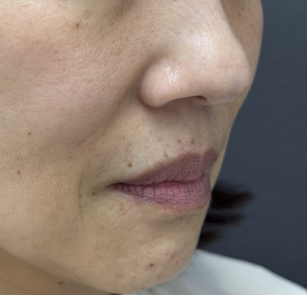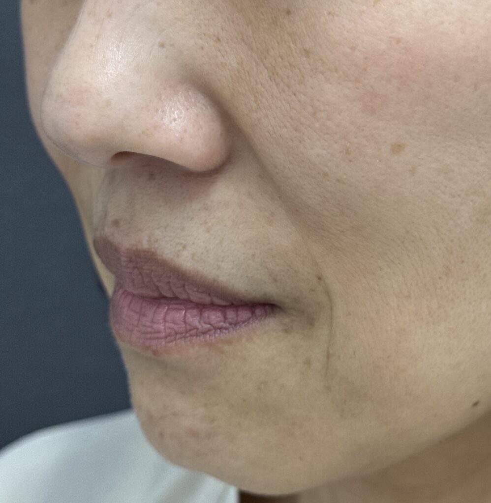 深いほうれい線の場合、1回では効果が乏しい、物足りない方も中にはいらっしゃいますが、本症例では1回でもかなりの効果が出ていますね。