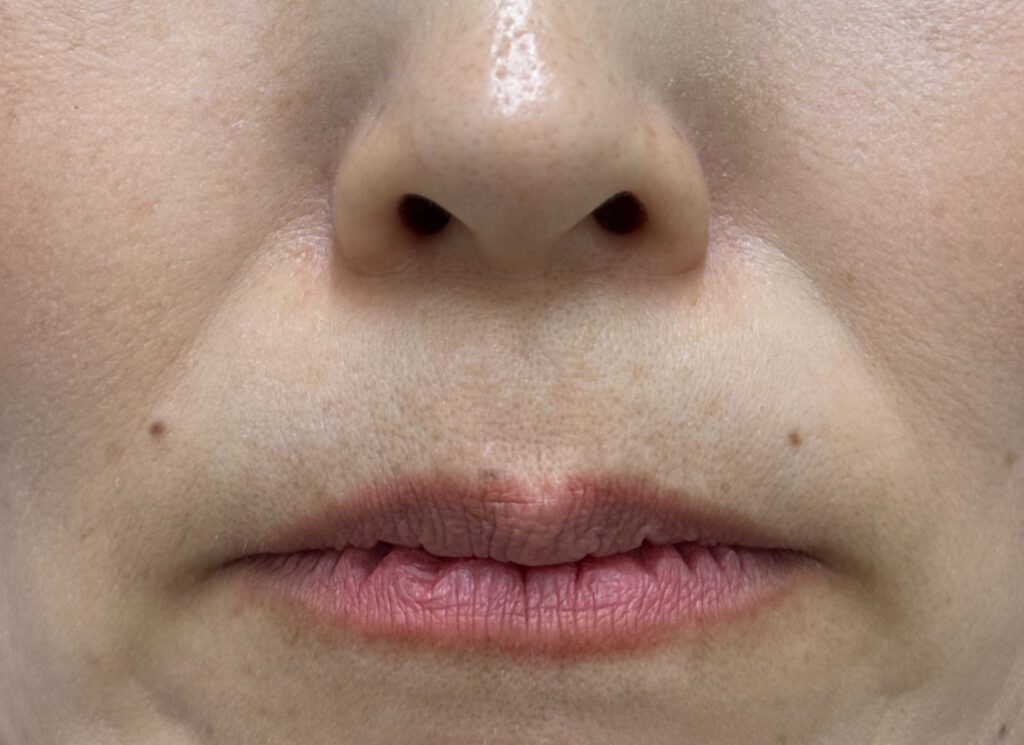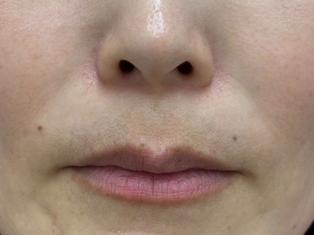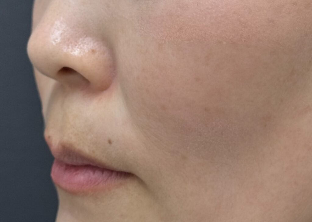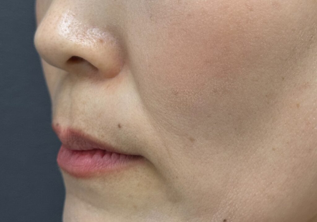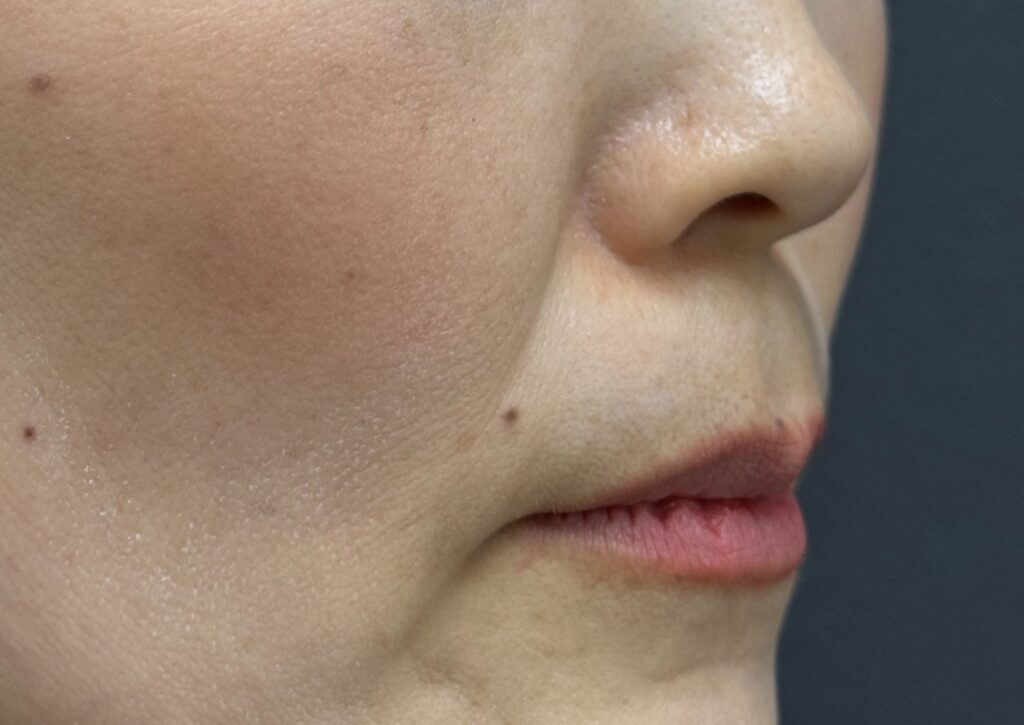 深いほうれい線の場合、1回では効果が乏しい、物足りない方も中にはいらっしゃいますが、本症例では1回でもかなりの効果が出ていますね。