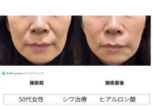 今回は、ヒアルロン酸注入によるシワ(ほうれい線)治療を行った50代女性をご紹介致します。