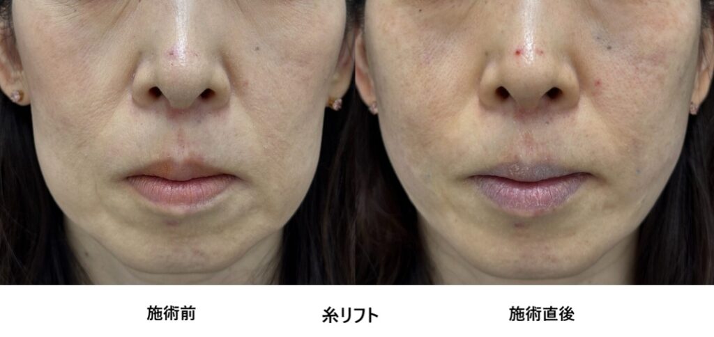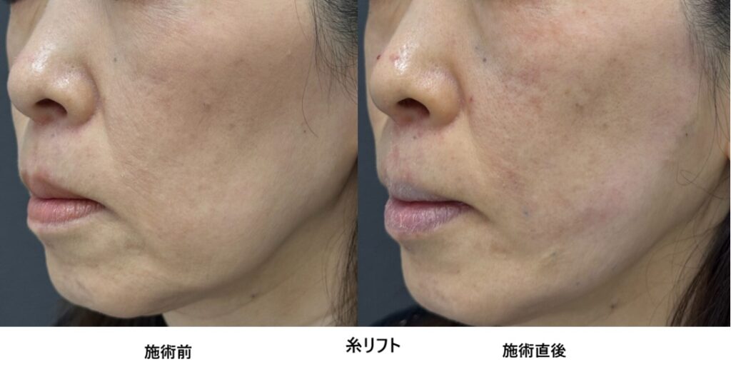 糸リフト治療直後でもあんまり腫れが目立ちませんね。すごく本人も大喜びです。