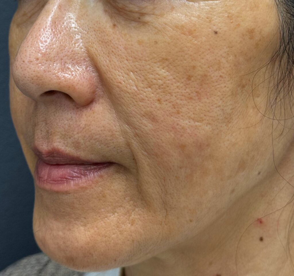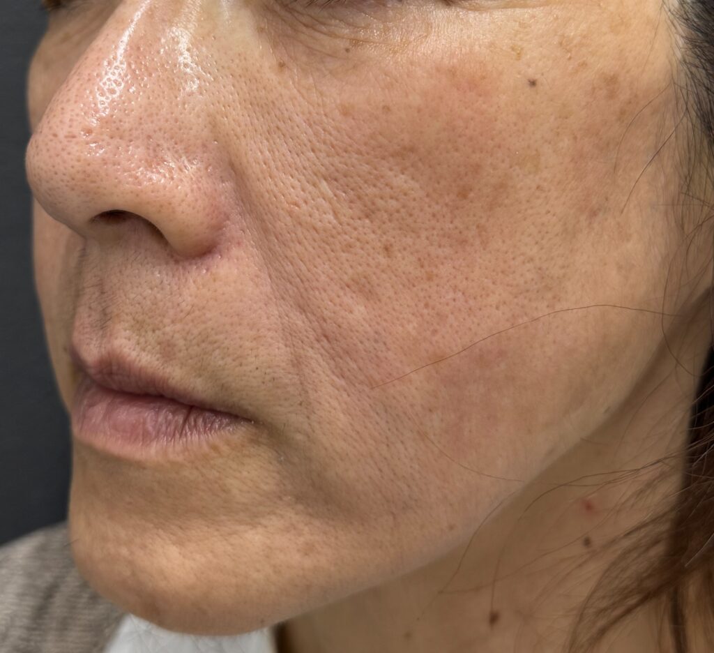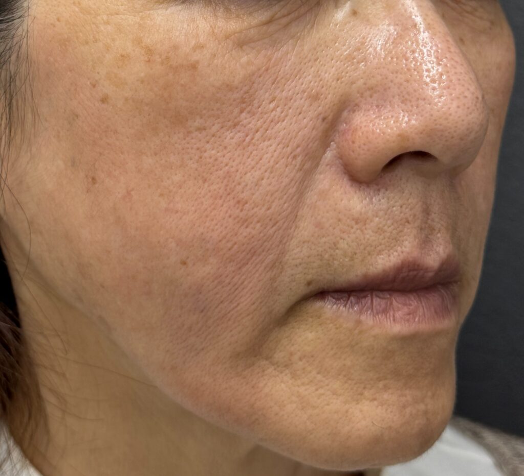 ほうれい線もホホのたるみもすごく薄くなっていますね。たるみがとれるとすごくお顔もしっかりとした印象になりますね。