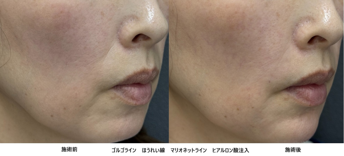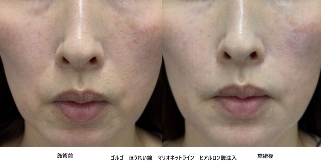 施術直後からゴルゴライン ほうれい線 マリオネットライン 顎にヒアルロン酸注入し