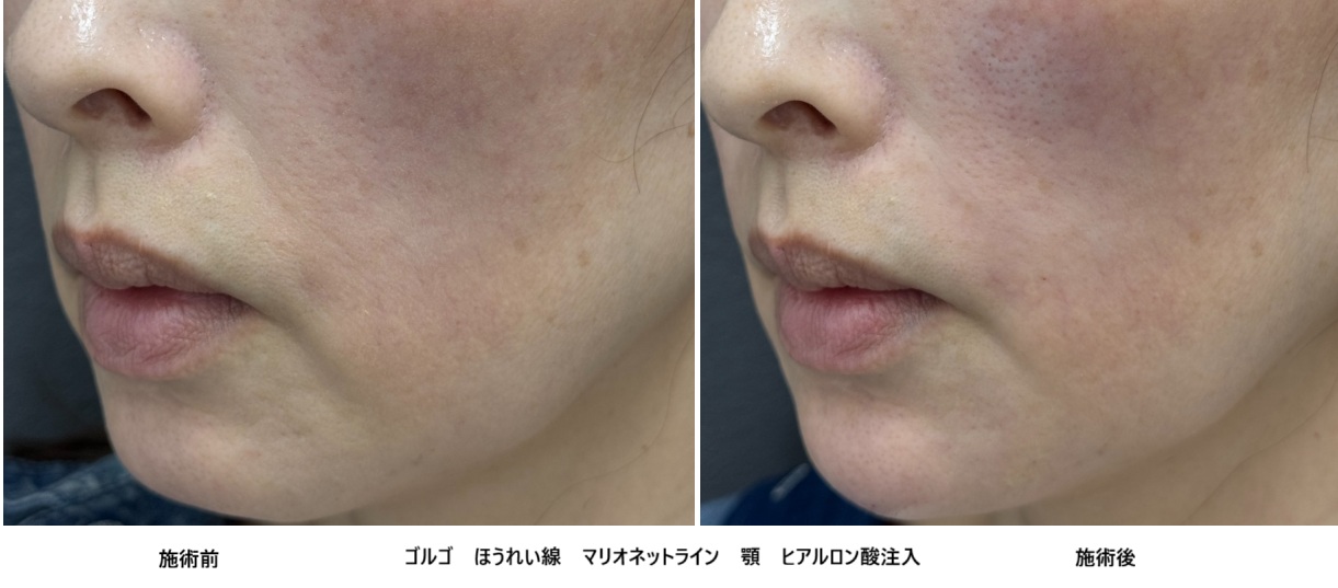施術直後からゴルゴライン ほうれい線 マリオネットライン 顎にヒアルロン酸注入し