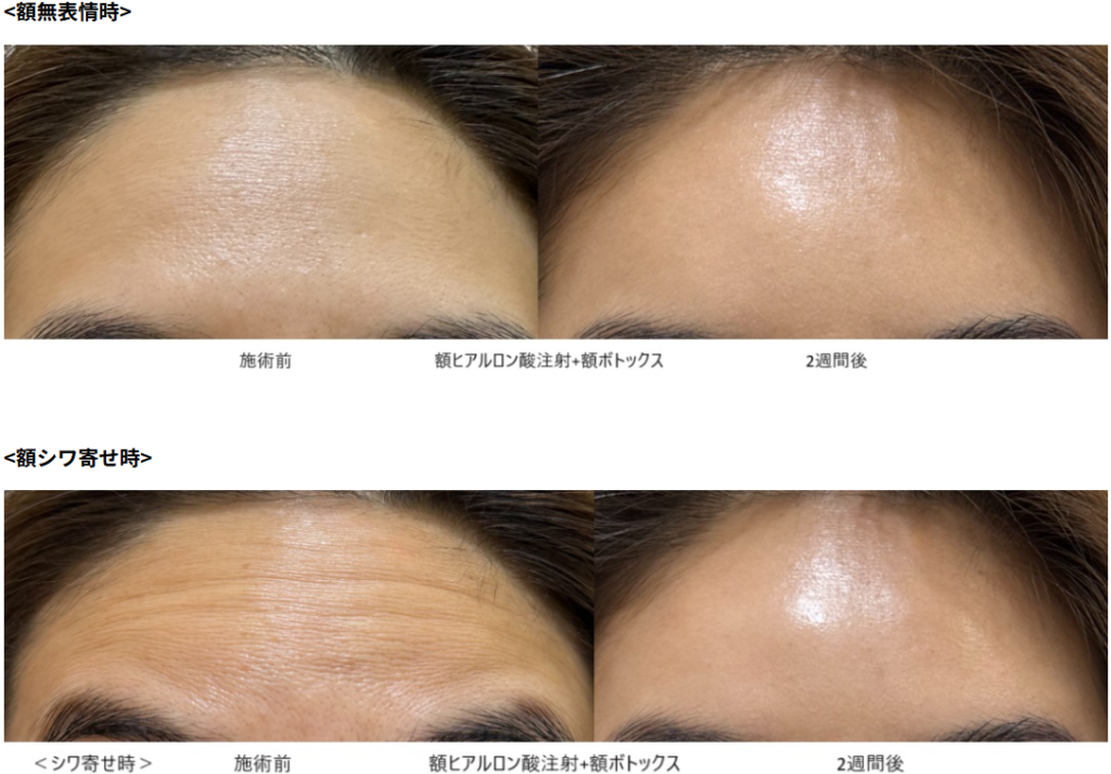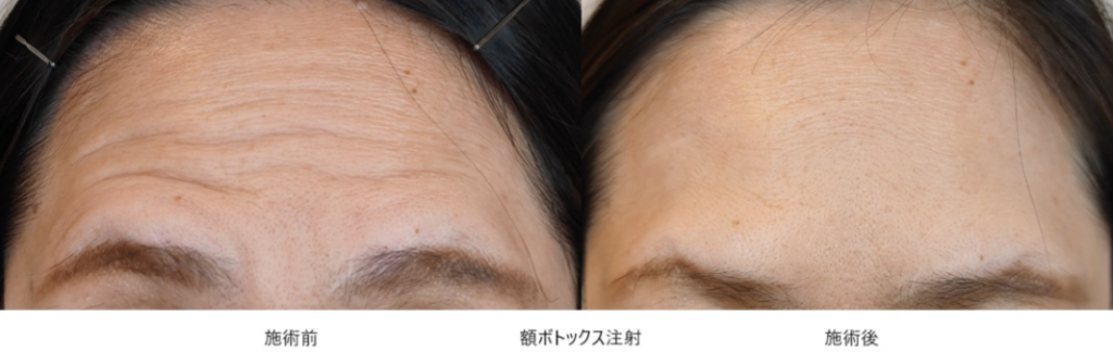 注意点: 額の外側まで打ちすぎたり、量が多いと「まぶたが重い」「眉が下がる」といった違和感が出やすいため、注入量と位置の微調整が必要な施術です。