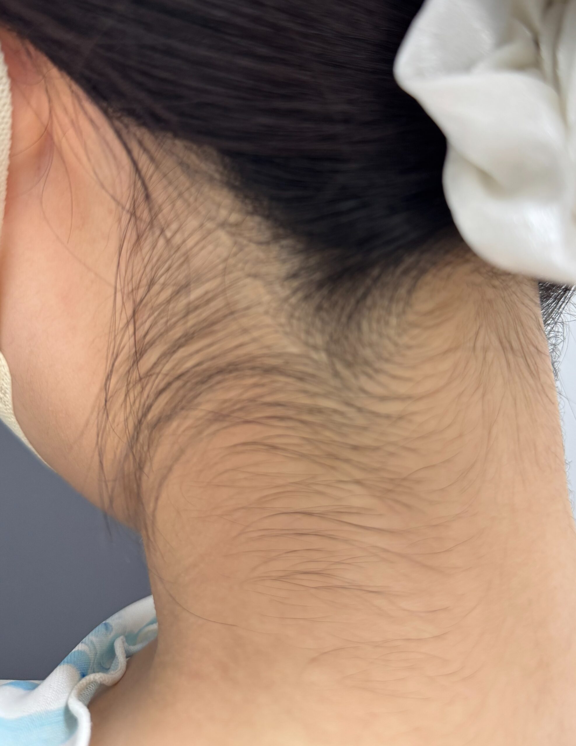 今回は、他院で全身脱毛中にも関わらず“うなじだけ照射できなかった”という20代女性に、当院のジェントルマックスプロで丁寧に照射を行い、美しく自然なラインに整えた症例をご紹介します。