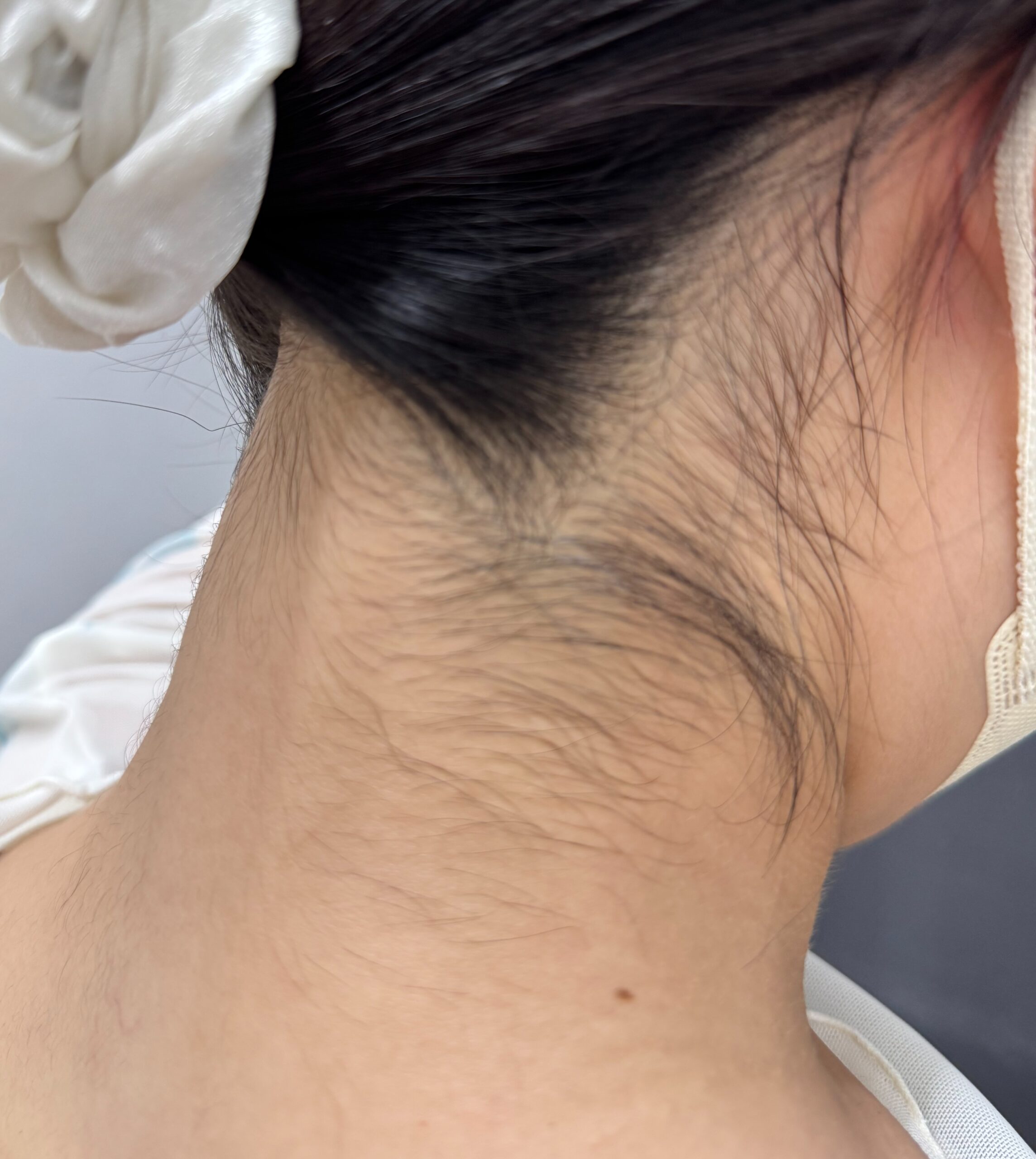 「髪を上げるのが楽しみになった」「首がすっきり見える」と喜んでいただけた症例です。